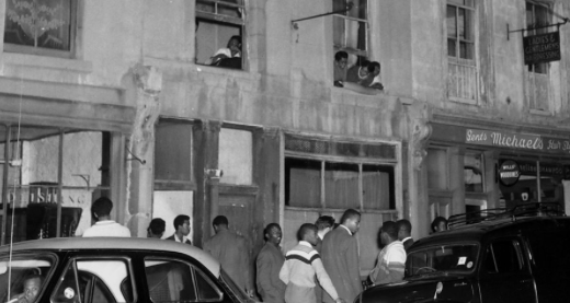 As the first Nottingham crowd was dispersed, disturbances broke out in London when a group of young men toured Notting Hill and Shepherd’s Bush. According to The Times of 26 August 1958, they allegedly assaulted ‘coloured men’. The next weekend, violence in the capital started when about 100 white youths armed with sticks, iron bars and knives gathered near an underground station in North Kensington, apparently after rumours that a Jamaican man had assaulted his white wife. The youths threw bricks at police cars, and a man was slashed across the throat. Subsequently, wrote The Times on 1 September, fights between ‘whites’ and ‘coloured’ people erupted.